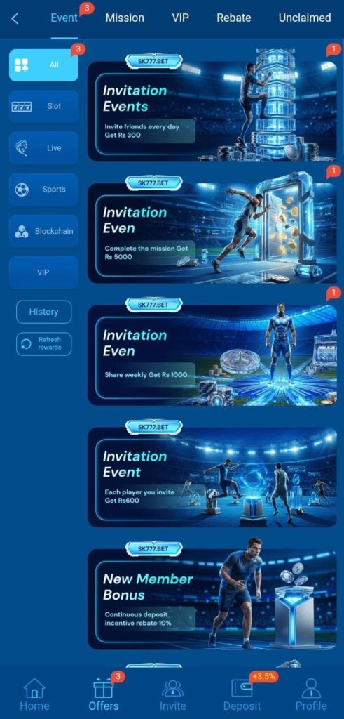 Firstly, SK777 Game offers an attractive referral bonus for inviting new users.